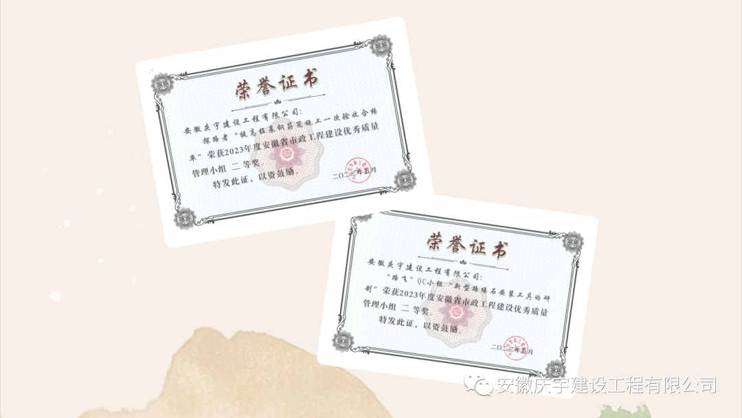 一直以来,安徽庆宇建设工程有限公司严格加强工程质量管理,全面推进质量管理小组,让QC小组从现场管理的角度入手,运用质量管理的理论和方法,围绕提高质量、降低消耗、改善管理、提高效率等方面选题并积极开展攻关,同时制定了切实可行的创优计划和施工技术方案与工程质量保证措施,并层层分解落实,量化管理,重点监控,有效确保了工程质量与进度。作为省内首批参加省、市QC成果发布活动的民营企业,我公司将继续以党的二十大精神为指引,坚持质量目标引领,坚持不断向科学化、规范化发展,促进人才成长和企业科技创新水平提高,做强建筑业质量高水平发展,提升企业核心竞争力,不断积聚发展的力量打造企业品牌形象。